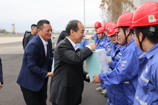 11月12日,上海市经济信息化工作党委书记程鹏一行到上海电建建筑公司参建的国家级海上风电研究与试验检测基地工程项目进行调研。上海市经济信息化工作党委办公室主任胡玉琳、工会副主任陈波,上海电建副总经理史耀辉陪同调研。 程鹏一行深入施工现场,实地考察该项目的传动链厂房、叶片试验车间、调度室的建设情况,并听取了项目生产经营、技术创新、安全管理等方面的汇报,对项目建设取得的成绩给予了充分肯定。 程鹏指出,国家级海上风电研究与试验检测基地项目是国家“十四五”规划的重大项目,也是我国首个国家级海上风电试验基地。要科学组织施工,确保重大工程建设有序推进;要以精益求精的工匠精神打磨细节,严把全链条质量关;要树牢安全发展理念,守牢守稳安全生产底线,为深入推动清洁能源发展、建设绿色中国作出贡献。 调研期间,程鹏与项目一线建设者亲切交谈,并为大家送上慰问品。 上海电建工会副主席,建筑公司党委副书记、纪委书记、工会主席及相关部门负责人参加调研。 |