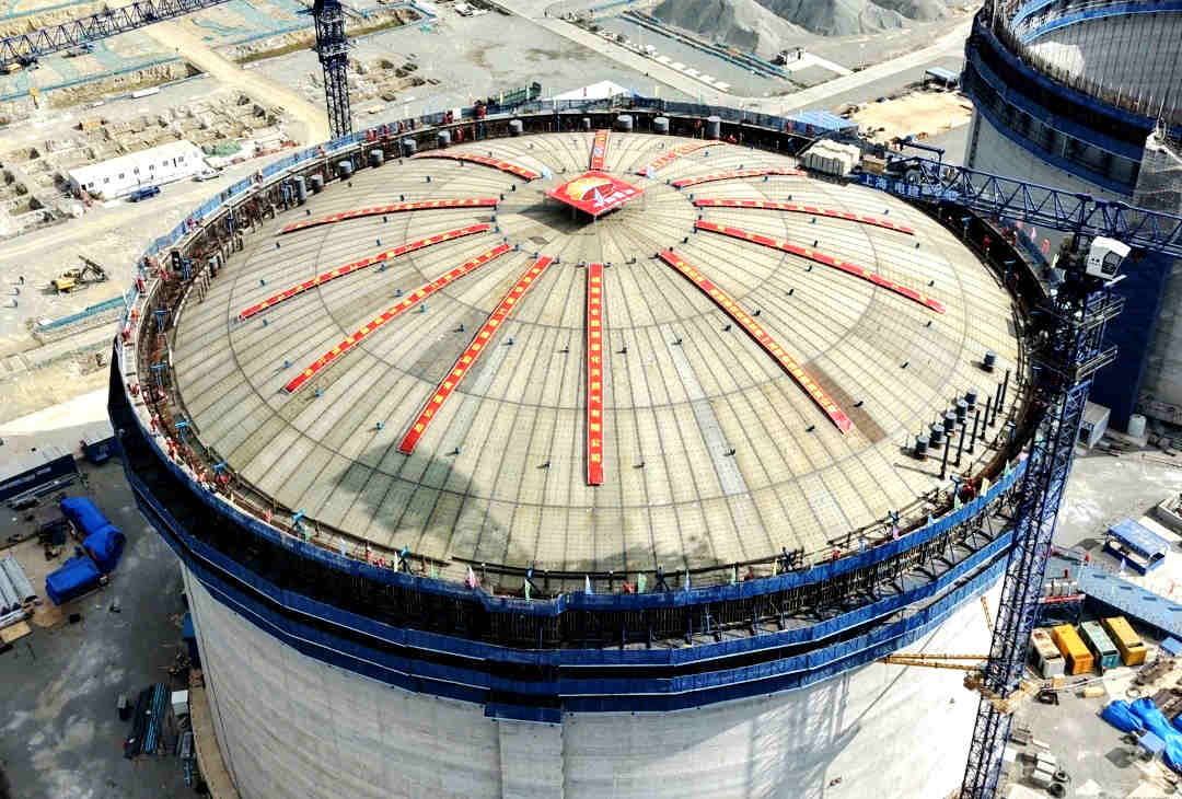 近日,公司参与建设的福建LNG接收站项目2号储罐成功实施气顶升施工作业,为后续内罐施工、穹顶施工等环节奠定坚实基础。重达千吨的钢制拱顶在四台鼓风机协同作业下,一次性平稳提升至约50米的设计高度,精确实现毫米级精准对接。 该项目位于福建省福州市福清市,是福建省“十四五”能源发展规划的重点工程,其接收站工程一期规模为300万吨/年,并具备650万吨/年的接收能力。公司所属建筑公司承建范围主要包括2号、3号混凝土储罐外罐工程施工、化学品库房、危废品暂存间、空压制氮站、淡水泵房、110kV主变电所、装车综合业务室、中央控制室、化验楼、办公楼、综合服务楼、主门卫、车棚等建筑物及附属设施工作。 150天!刷新行业建设速度 在储罐基础施工的关键阶段,项目部采用“双承台+隔震”结构方案,显著提升LNG储罐在复杂地质条件下的安全性与稳定性,为储罐稳定运行奠定根基。外罐墙体施工环节首次应用国内行业升模新技术——轨道式液压滑升模板系统,实现罐壁内侧模板高效、精准且同步爬升作业。自5月11日启动首段墙体浇筑以来,作业人员在罐壁预埋爬锥并安装设备引导导轨滑升系统,实现模板“一次组装,全程滑升”。凭借该技术支撑,项目部仅用约150天高效完成外罐施工,刷新国内大型LNG全容储罐外罐建设速度纪录。 毫米之间,见证非凡匠心 为确保近千吨钢制拱顶与罐顶抗压环实现毫米级精准对接,罐壁施工方案对垂直度提出极高要求。项目团队将“毫米级”精度作为核心标准,从首圈罐壁墙体施工起,日行两万步成为常态;从钢筋绑扎的毫米级定位,到模板滑升过程中的反复校准;从混凝土浇筑时坍落度与振捣时间的严格控制,到轨道式液压滑升模板系统的高效应用——该系统不仅为工人提供稳定性强、防火性能优的作业平台,提升承压环焊接的舒适性与安全性,并在环梁混凝土浇筑后显著优化墙面处理、接缝打磨等工序效率,有效降低高空作业风险,全面改善气顶升前的施工条件。凭借对每一处细节的极致把控,为千吨穹顶的平稳升顶奠定坚实基础。 项目建成后,将满足福建、江西、湖南三省的天然气季节调峰需求,同时为西气东输二线和三线提供应急保供功能,每年可替代标准煤约1500万吨,减少100万吨有害物质及8000万吨二氧化碳排放,对促进福建省能源结构转型和生态环境保护具有重大意义。 |